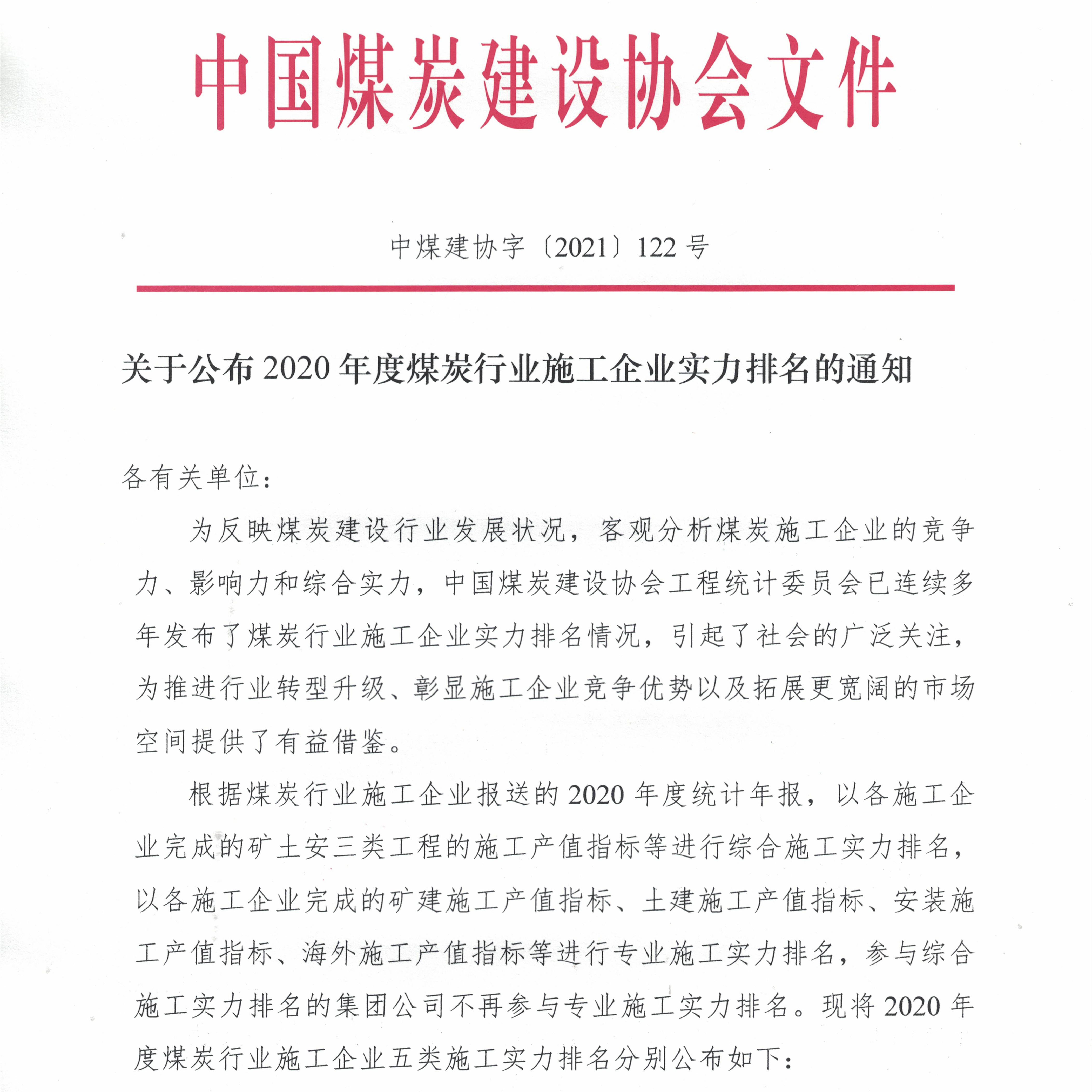 據(jù)悉,煤炭行業(yè)施工企業(yè)綜合實(shí)力排名是反映煤炭建設(shè)行業(yè)發(fā)展?fàn)顩r,客觀分析煤炭施工企業(yè)的競爭力、影響力和綜合實(shí)力,根據(jù)對年度煤炭施工企業(yè)主要經(jīng)濟(jì)指標(biāo)進(jìn)行綜合審查統(tǒng)計(jì)而得出的行業(yè)權(quán)威榜單。