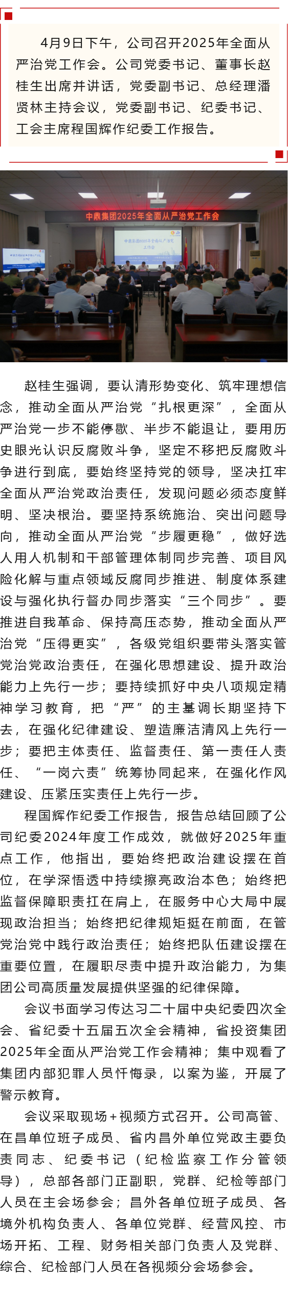 中鼎集團(tuán)召開2025年全面從嚴(yán)治黨工作會(huì)